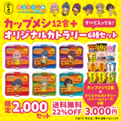大人気 TV アニメ 「ゆるキャン△」 とのコラボセット! 山ごはんやキャンプ飯にピッタリな「日清カップメシ」シリーズと大人気アニメシリーズ「ゆるキャン△」とのコラボセットが今年も登場! かわいいオリジナルカトラリーセットとカップメシでおうちだけでなくぜひ外ごはんもお楽しみください!