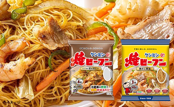 たっぷりの野菜を炒め、カレーパウダーとからめるだけでカレー味の焼ビーフンが召し上がりいただけます。1980年代に発売した焼ビーフンカレー味を現代風にアレンジしました。