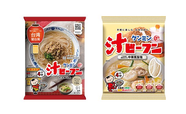 【汁ビーフン】お鍋ひとつで煮込むだけで旨みのある塩味の汁ビーフンがお召し上がりいただけます。チキンベースに「野菜の旨み」を加え、アクセントに「ごま油」や「生姜」の風味を効かせました。