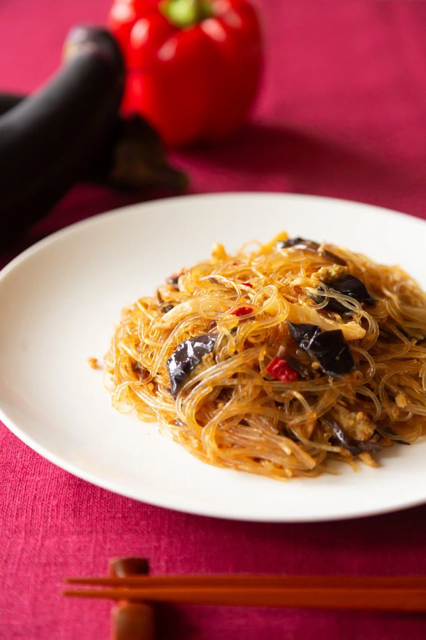 はるさめに鶏ひき肉と揚げなすを加え、ピリ辛に仕上げました。