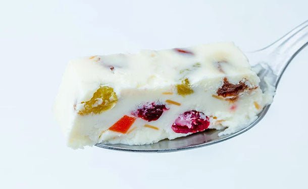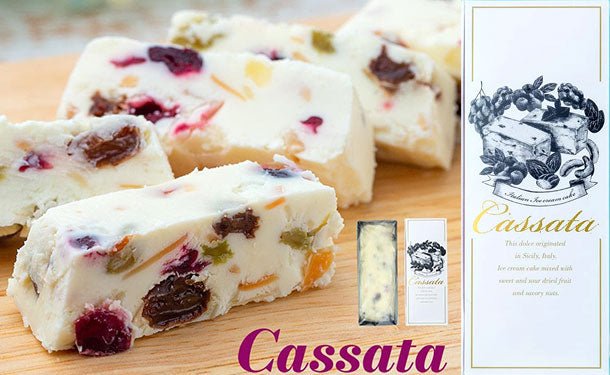 イタリア・シチリア地方発祥のドルチェ。甘酸っぱいドライフルーツと、香ばしいナッツを混ぜ込んだアイスケーキです。当店のカッサータは、北海道産ナチュラルチーズを使用。さらに本格的で豪華なスイーツになっています。