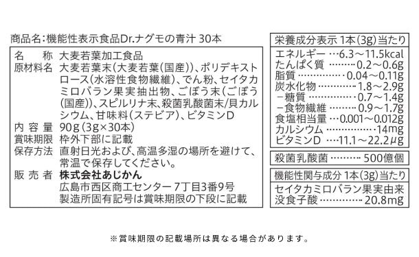 あじかん「機能性表示食品 Dr.ナグモの青汁」30本入