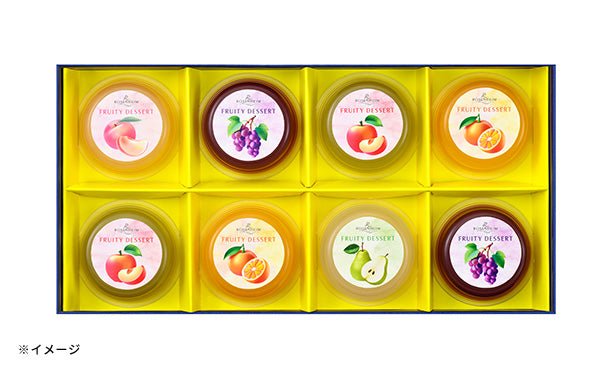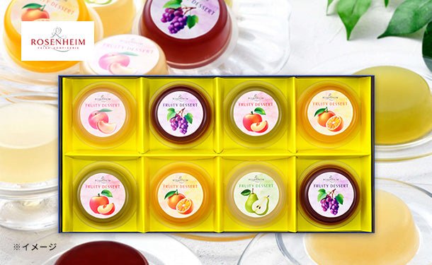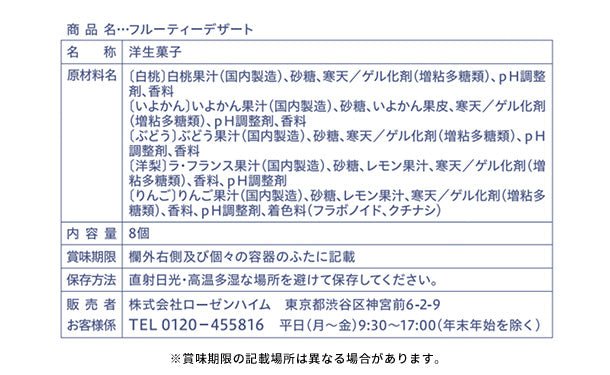 白桃、いよかん、ぶどう、洋梨、りんごの5つの味わいを詰め合わせました。すべて洋酒不使用のため、どなたでもお楽しみいただけます。