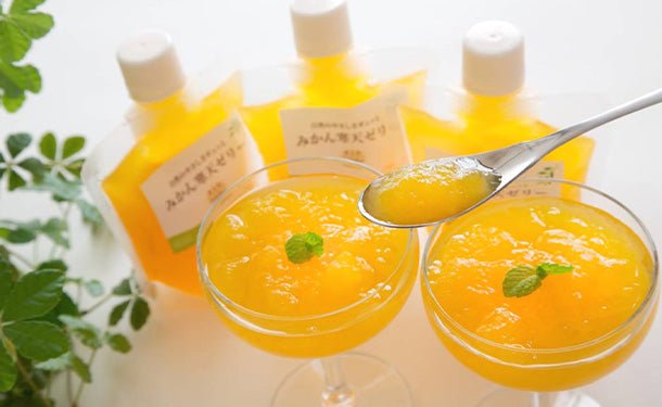 愛媛県の中でも屈指のみかん・柑橘の最高級ブランド産地である八幡浜産のみかんの美味しさをゼリーの中にギュッと閉じ込めました。みかん本来の味わいを楽しんで頂くため、果汁で作った身体に優しく、酸度控えめ、濃厚な甘さが特徴の無着色・無香料の飲む寒天ゼリーです。