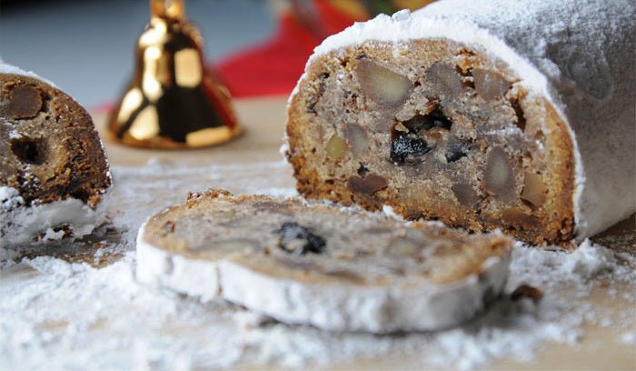 シュトーレンとは、お酒に漬け込んだドライフルーツやナッツを、生地にたくさん練り込んだ醗酵菓子。