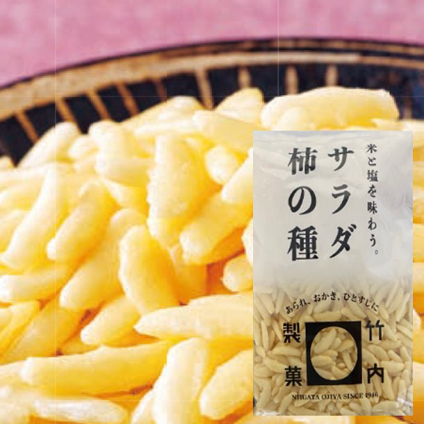 パリパリ食感で食べる手が止まらない、サラダ味の柿の種です。