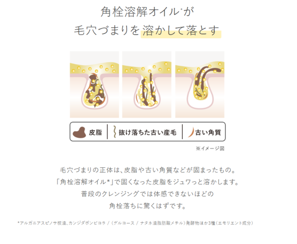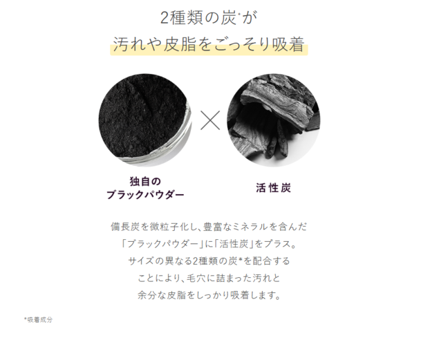 とろけてうるおう心地よいテクスチャーなのにウォータープルーフのメイクもしっかりオフ。メイクはもちろん、毛穴の黒ずみ*1や皮脂、ザラつきまでもオフするクレンジングバーム。サイズの異なる2種類の炭*2を配合し、頑固な毛穴づまりをごっそり除去。