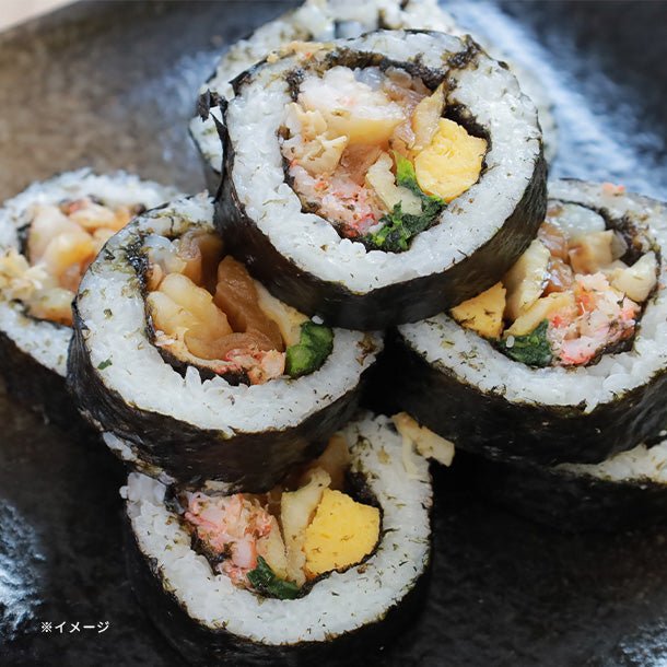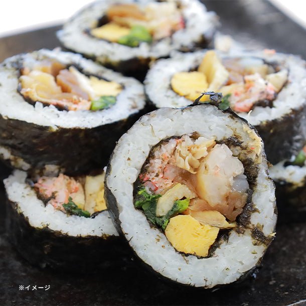 具だくさんの海鮮太巻ほたて・いか・紅ずわいがに・煮あなご・蒸し海老といった海鮮具材に、厚焼き玉子・かんぴょう煮・菜の花を盛り込み、仕上げました。ノーカット品ですのでお好みの厚さに切り分けてお召し上がりいただけます。具だくさんの海鮮太巻を手軽にどうぞ。